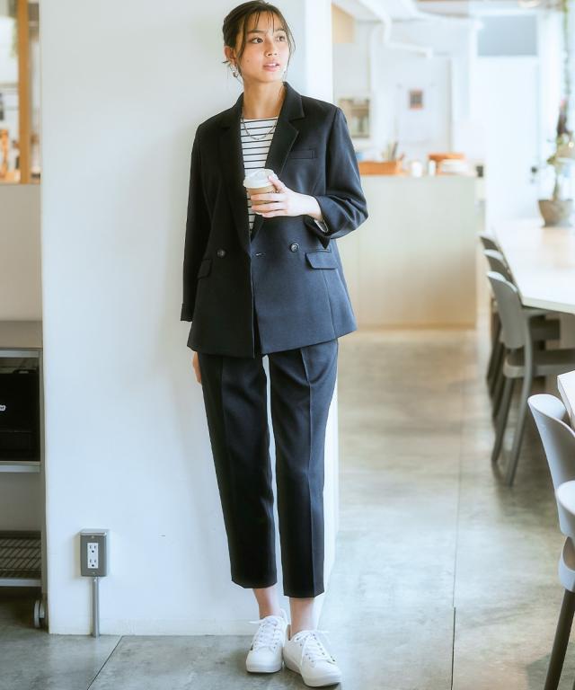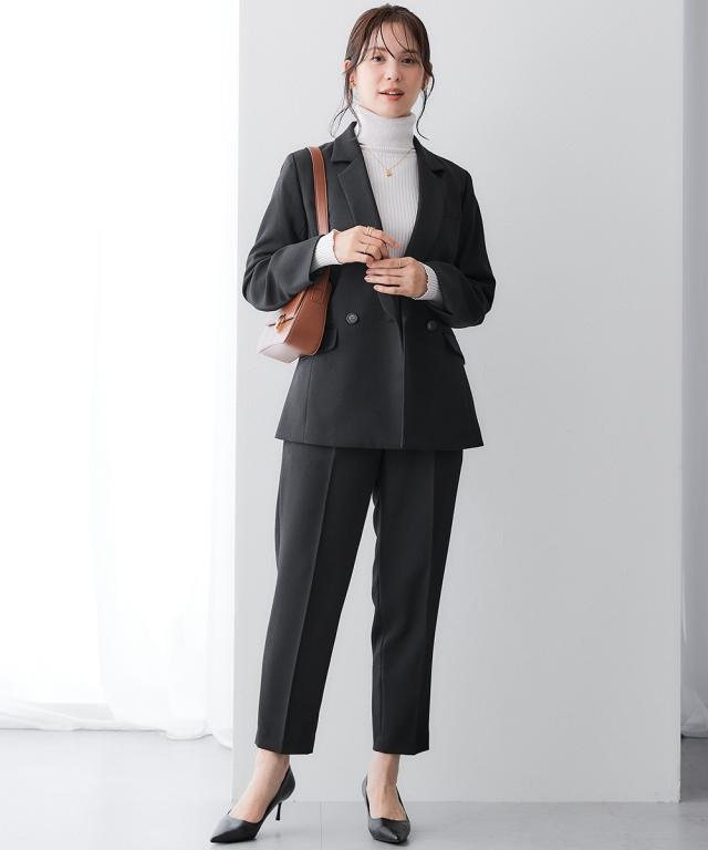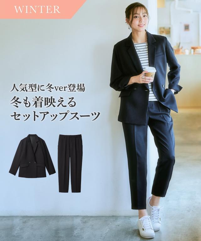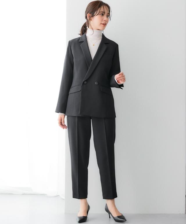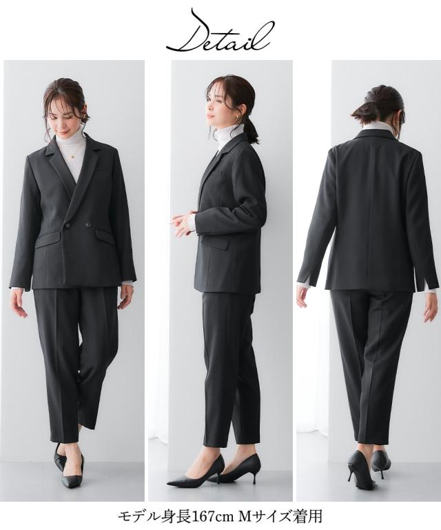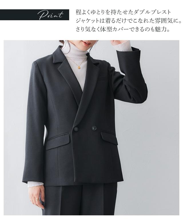 スーツ レディース ウール調素材ダブルブレスト ジャケット パンツ テーラード +テーパード 冬 ビジネス セットアップ | LL/3L | ニッセン nissen