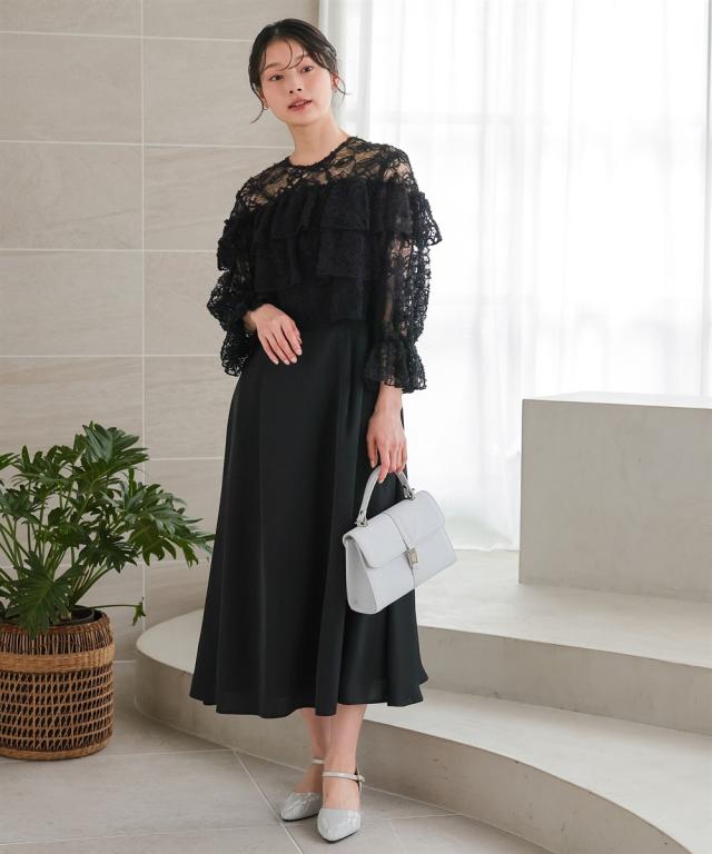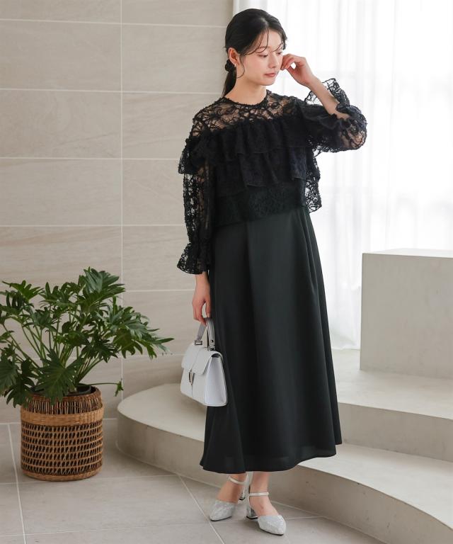 繊細フラワーレースを贅沢に重ねた、華やか仕立てのワンピースドレス