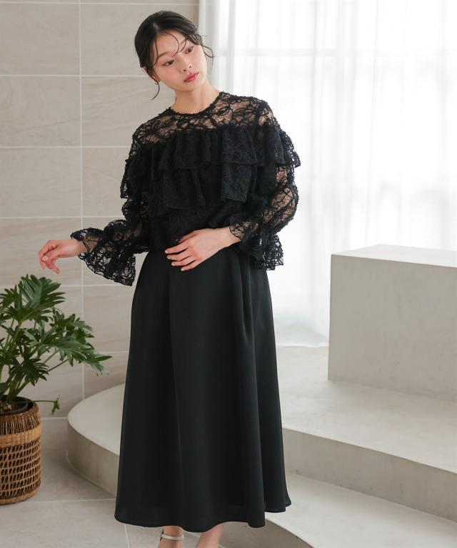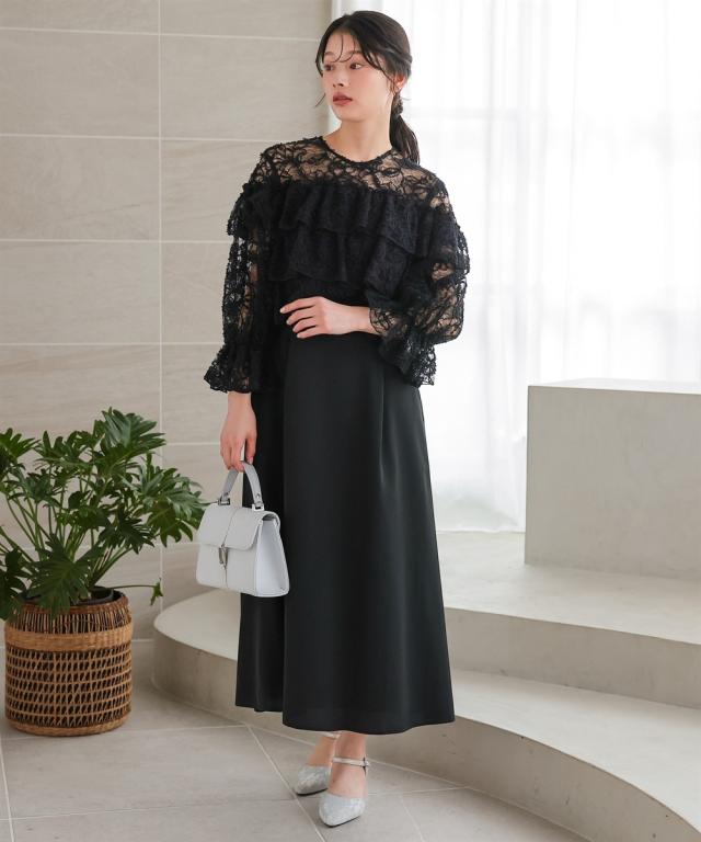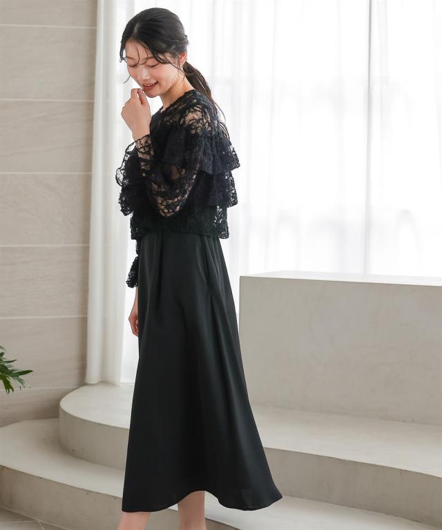 繊細フラワーレースを贅沢に重ねた、華やか仕立てのワンピースドレス