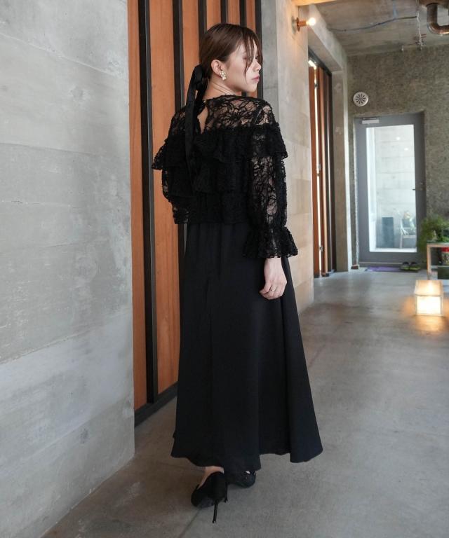 段状のフリルレースが動きに合わせて表情豊かに揺れる仕立て