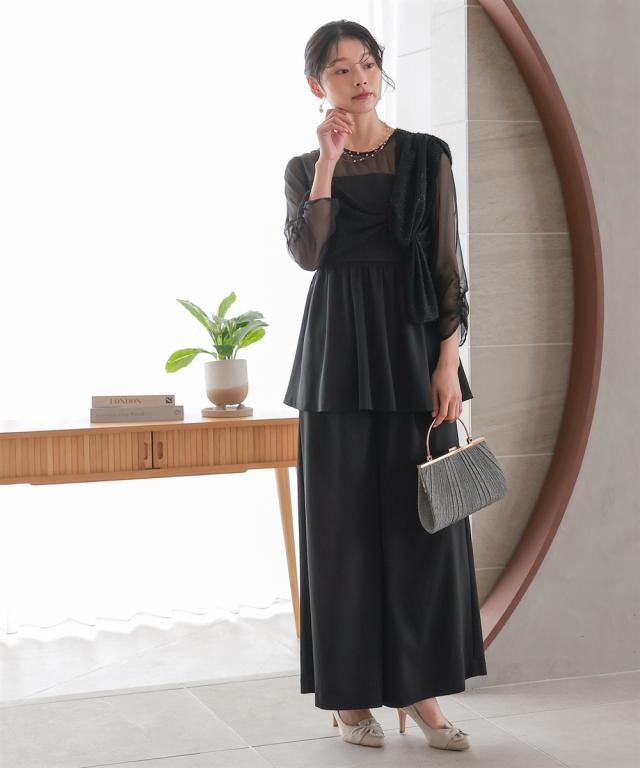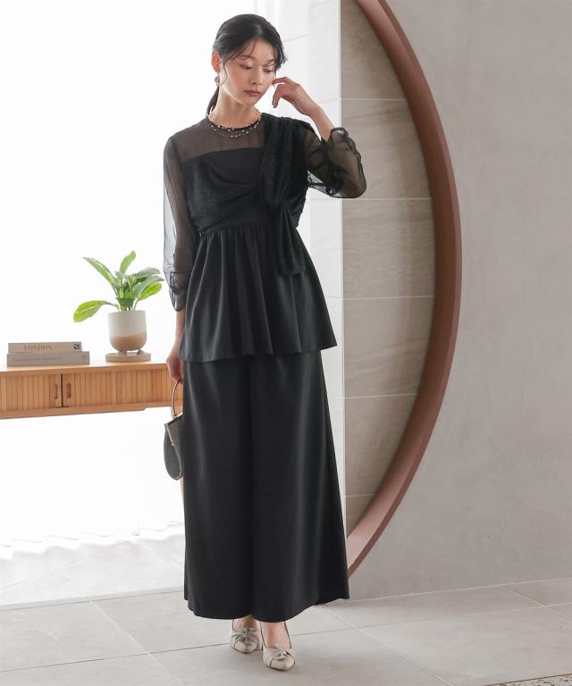 パーティドレス パンツ レディース 結婚式 パーティー ドレス カットジャガード使いアシメ デザイン ブラウス セット 春 夏 秋 冬 | LL/3L | ニッセン nissen