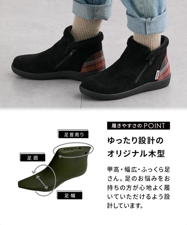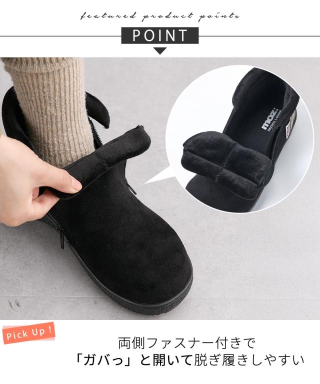 材質=合成繊維(スエード調)・合成繊維 底材=合成底 底の厚さ(後ろ)=約3cm ワイズ=4E 重量=約210g(4E:Lサイズ片足) ※生産時期や素材などによって多少個体差があります。 内側ファスナー開き ※中敷きは取り外して自然乾燥できます。 原産国:中国製 備考:単位(cm) ※製造段階で個体差が生じます。参考程度にお考えください。