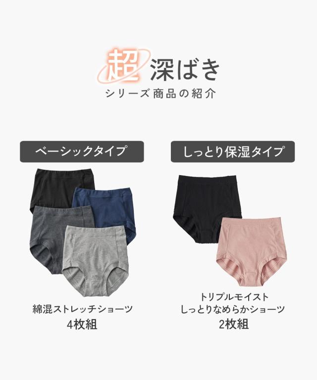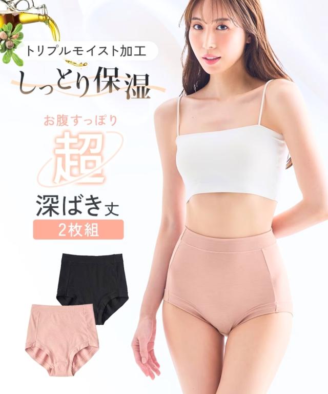 おなかすっぽり超深ばき丈 トリプルモイストしっとりなめらかショーツ2枚組(保湿・ecoプラ)