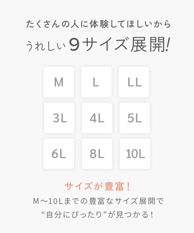 Mサイズから10Lサイズまで、どんな体形の方にもご満足いただけるよう、サイズを多数揃えました。