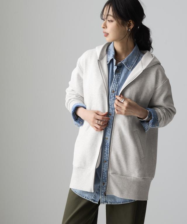 綿100%裏起毛スウェットロング丈ビッグパーカー(抗菌防臭・毛玉防止・静電気防止)