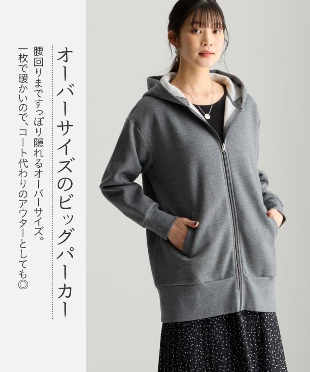 パーカー レディース 綿100% 裏起毛 スウェット ロング丈ビッグ 抗菌防臭 毛玉防止 静電気防止 冬 フーディ | 8L/10L | ニッセン nissen