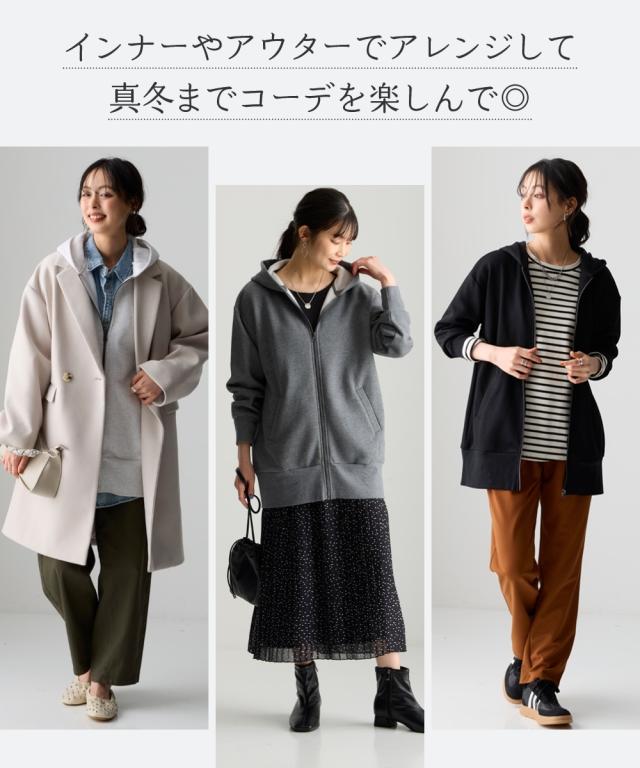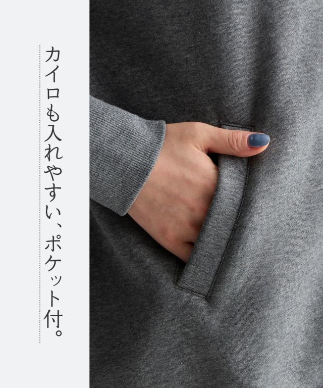 冬のお悩みを解決!ふわっと軽くて、しっかり暖かい。冬の心強い味方です。 ■デザイン シルエットは人気のオーバーサイズ。しっかり体型カバーしつつも、ふくらみすぎない絶妙なバランスで、すっきり見えます。1枚、羽織るだけで気になる腰回りをしっかりカバーしてくれます。前を閉じればチュニックとしても使えて便利。高めの襟で首回りも暖か。便利なポケット付き。 ■素材 肌にやさしい綿100%裏起毛で、チクチク知らずのふんわり感。冬でも意外と気になる汗!抗菌防臭加工付きで、暖房の効いた屋内でもニオイが気になりにくい。冬に多発する静電気も起きにくい!毛玉もできにくく、できても自然と取れて目立たないのが綿素材のいいところ。気軽に洗濯できるのでお手入れ簡単で便利。袖と裾は型崩れしにくいリブ仕上げで伸縮性もあり、毎日着たくなる心地よさです。