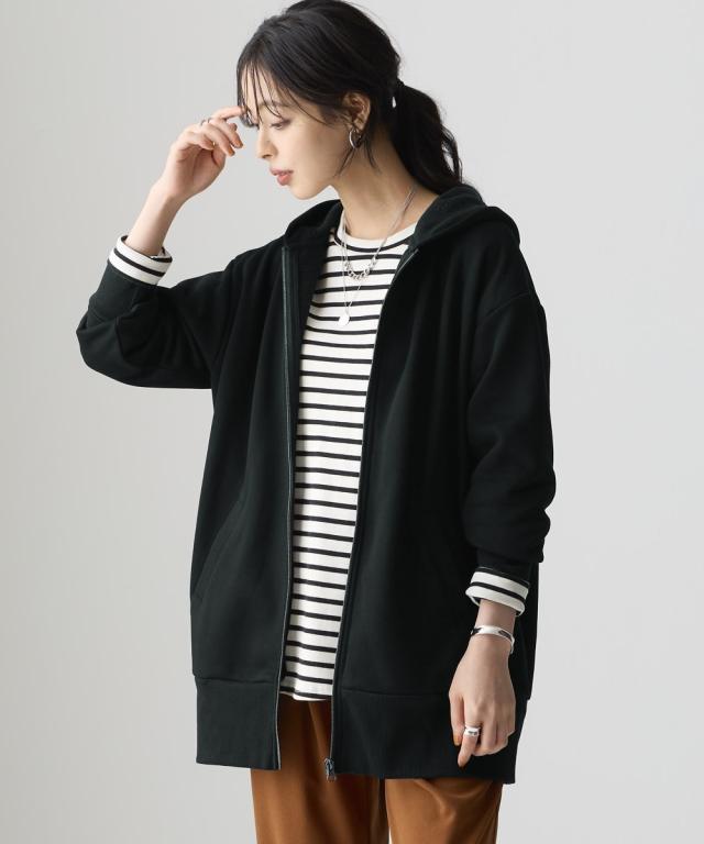 綿100%裏起毛スウェットロング丈ビッグパーカー(抗菌防臭・毛玉防止・静電気防止)
