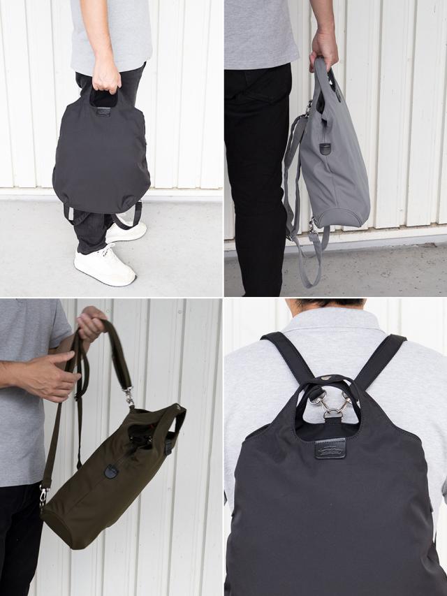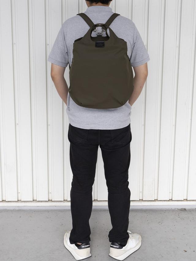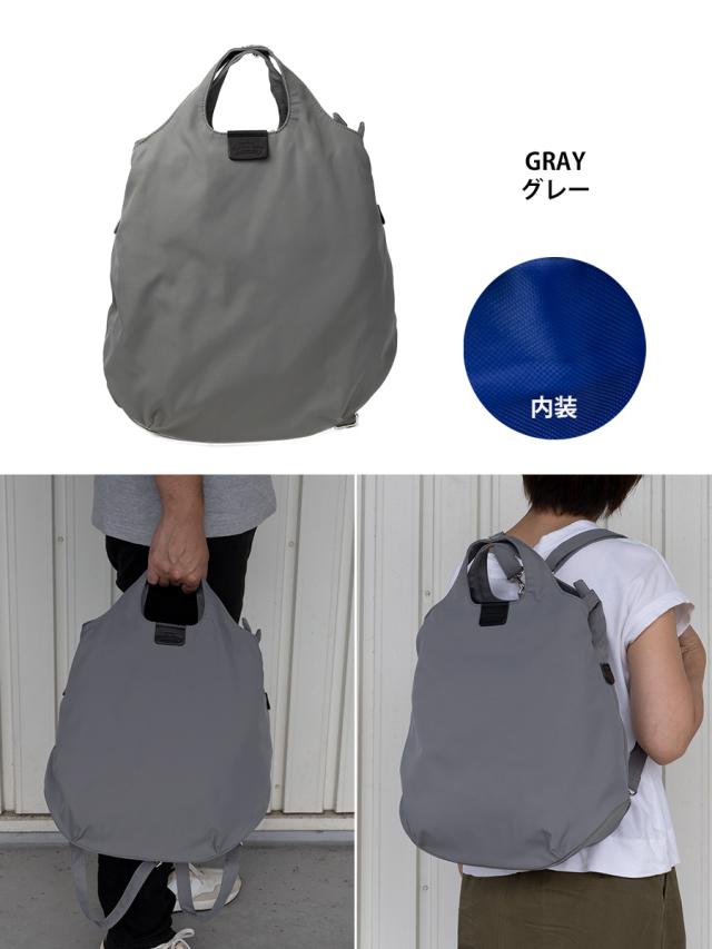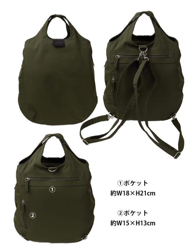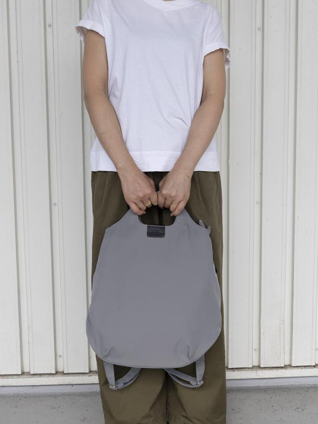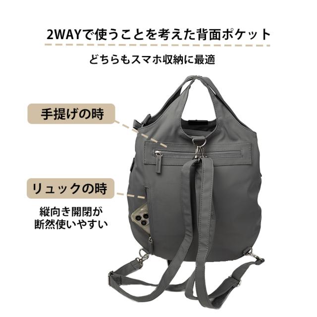 取り外しできる2本のベルトでリュックにもなる2WAYバッグです。丸いハンドルで手提げで持ってもおしゃれ。底の角が丸くデザインされたタマゴ型シルエットが特徴です。