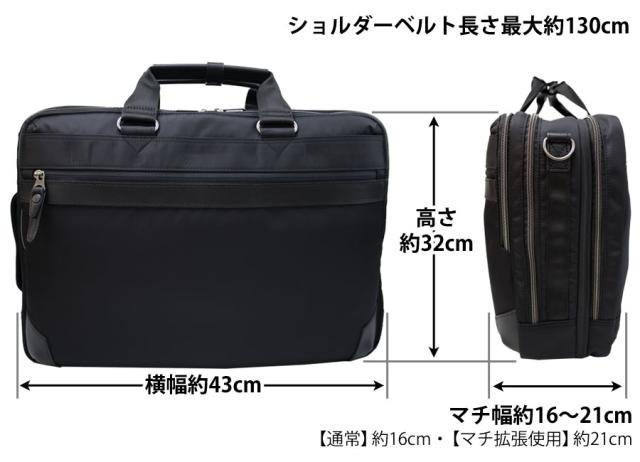 約15.6インチまでのノートPC・タブレット端末が収納可能なB4対応サイズ。収納量に応じてマチ幅が調節できるマチ拡張機能付。