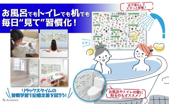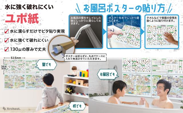 防水仕様で長く使えるため、お風呂だけでなくリビングや勉強机のそばにも貼ることができ、学習環境をより充実させることができます。