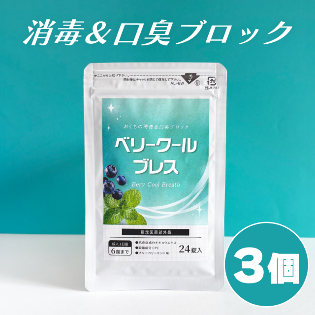 【指定医薬部外品】口臭 口内炎 消毒 指定医薬部外品 24錠入 トローチ ニオイケア ベリークールブレス 殺菌 タブレット 消臭 口内炎 炎症 無臭 エチケット ニオイケア 3袋