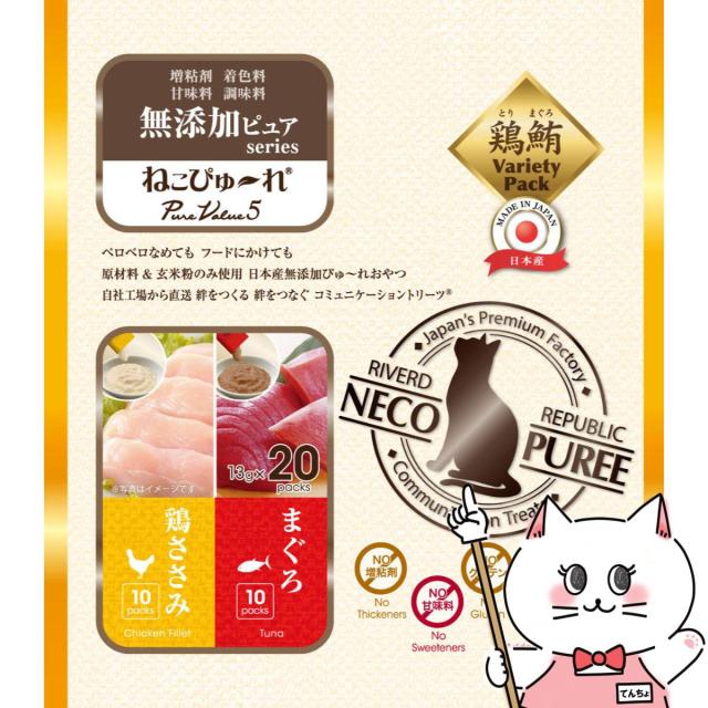 ねこぴゅ〜れ 無添加ピュア PureValue5 鶏ささみ/まぐろ 13g×20本[リバードコーポレーション 株式会社][happiest](6062535)