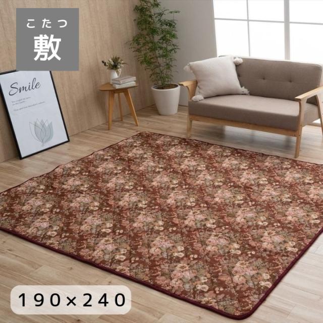 ミリア こたつ敷布団 こたつ敷き カーペット ラグ 花柄 ゴブラン織りオールシーズン 190×240cm ベージュ ローズ