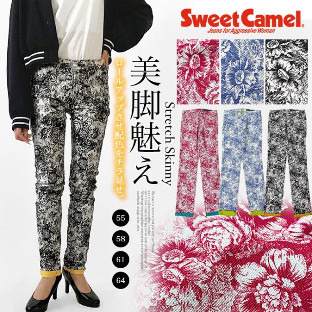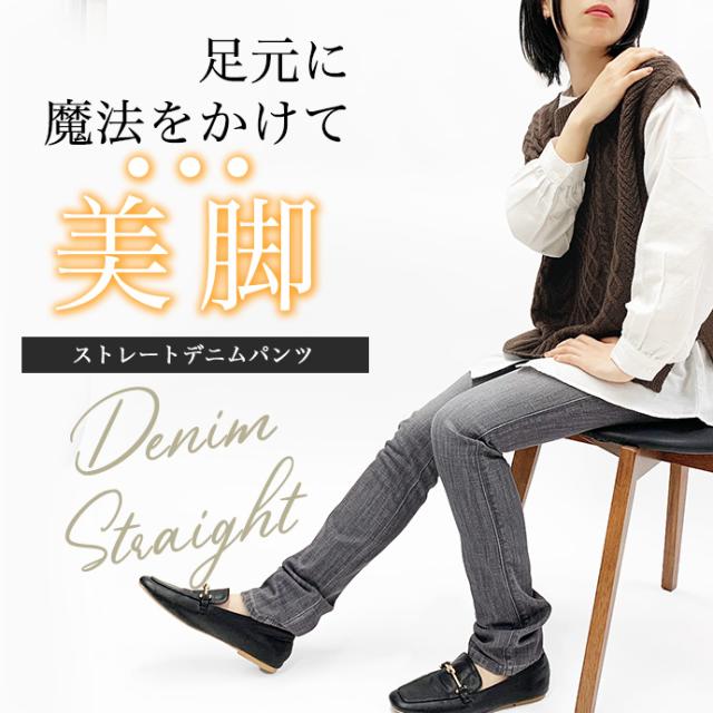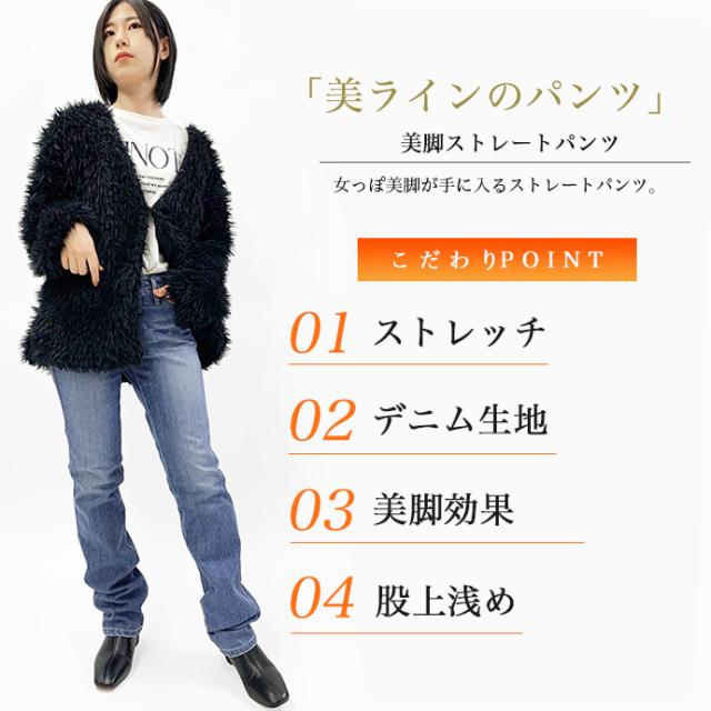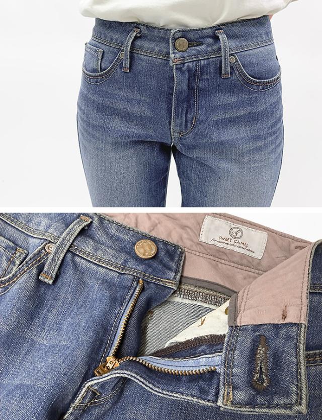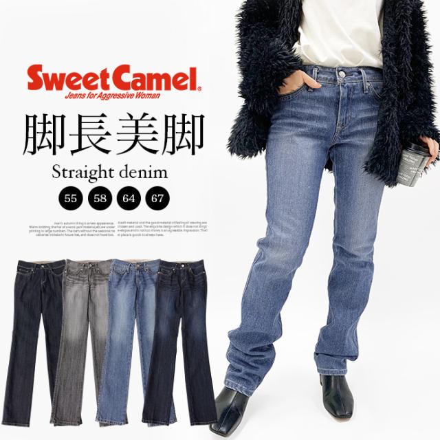 デニム パンツ ジーパン ストレート ボトムス 細身 股上浅め 小さめ 小さいサイズ 美脚 Sweet Camel スイートキャメル レディース 送料無料