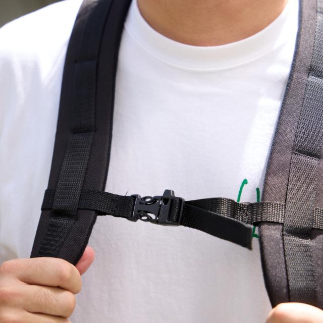 撥水加工、蛍光テープ、胸のバックルが緊急ホイッスルになります。
