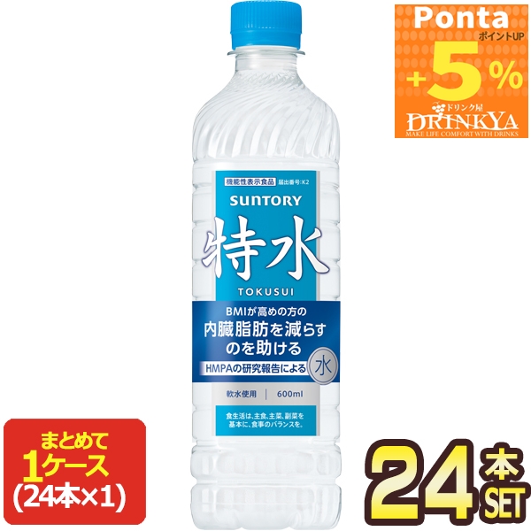 【Pontaポイント+5%】サントリー 特水 600mlPET×24本 【3〜4営業日以内に出荷】[送料無料] TOKUSUI 軟水 機能性表示食品 BMI 内臓脂肪