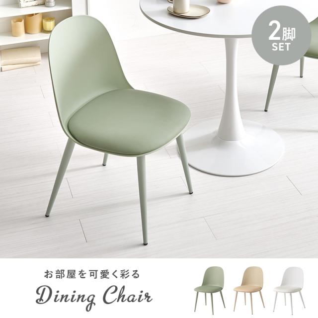 ダイニングチェア 2脚セット おしゃれ 白 北欧 2脚 カフェ チェア 椅子 食卓椅子 ポリプロピレン PP 韓国インテリア クッション付き リビングチェア シェル イス セット デスクチェア かわいい パステルカラー 緑