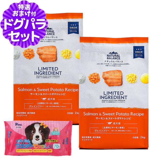 【沖縄以外送料無料】ナチュラルバランス LID グレインフリー 成犬用 サーモン&スイートポテト 2kg×2袋+わんわんウエットてぃっしゅ 1個 ドッグフード 犬 ドライ