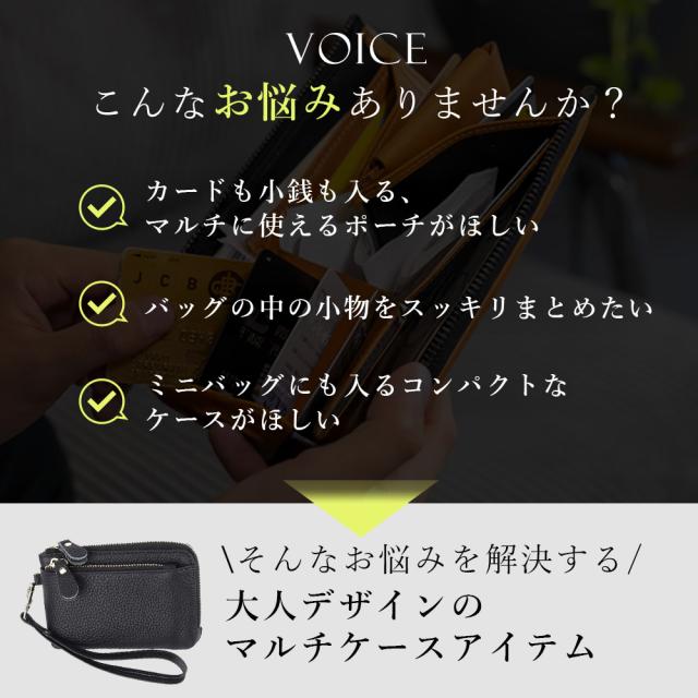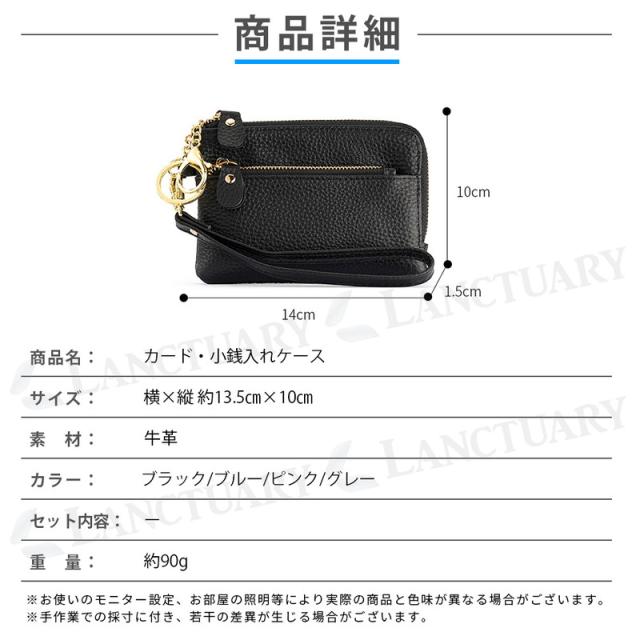 | 商品の説明 | 薄型 カードケース 小銭入れのシンプルなのに機能的ケース 小銭、カード、お札、カギをひとつに収納が可能。 これ1つでスマートに外出できちゃいます。 キーチェーン、L字型ファスナー、内ポケット、コンパクトな設計。 ユニセックスで使える今までに見ないフラグメントケース フラグメントとは 断片 を意味し、財布の必要最低限を切り取ったケースのことを表します。 ミニマムでおえでかけが出来るおすすめアイテムです。 カードがたっぷり入る収納力 最大3枚のカード収納が可能で、内側ポケットは3枚 表側のポケットに6枚と収納ができます。 免許証や保険証などあなたの大切なアイテムを しっかりと収納できます。 大開口で使い易いL字型ファスナー 大きく開くので、必要なものを入れた状態でも 中身がしっかり見えて、取り出しも楽チン。 リップなどの小物もいれやすいです。 鍵も収納可能 鍵をサッと取り出せる、便利なキーチェーン付き。 カラビナのフック付きで取り外しが可能で、 バッグにも付けれます。 手触りのいい牛革を採用。 質感を楽しみつつ長くお使いいただけます。 RFIDスキミング防止機能 カード情報を守る「RFID防盗技術」搭載 電磁波スキャンから個人情報をしっかりガード |
