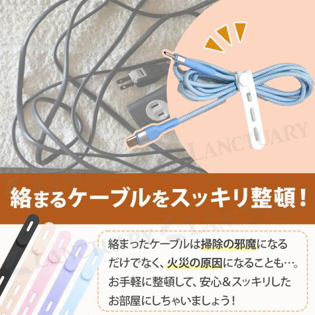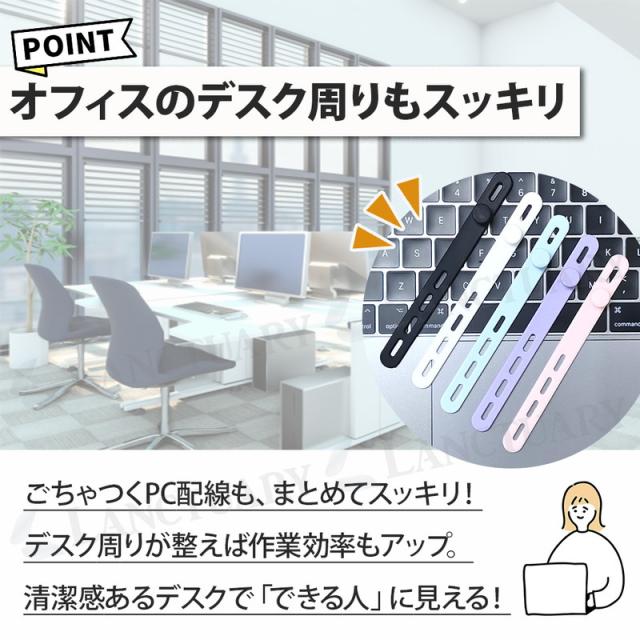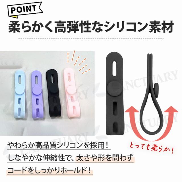 絡まったケーブルをそのままにしておくと掃除がしにくかったり火事になったりと大変。このケーブルバンドは柔らかいシリコン素材を使用しておりどんなコードもしっかりホールドしてくれます。4箇所の留穴がどんな長さのケーブルにもしっかり対応し、きれいにまとめてくれます。お菓子の袋とじや傘やカバンなど、自分のものという目印としても大活躍。いろんな用途でご使用いただけます。お家だけじゃなくオフィスにも!デスク周りをスッキリ整頓し仕事効率をあげましょう。使いやすい色から差し色カラーまでカラバリ豊富でお好きなカラーが見つかるはず。