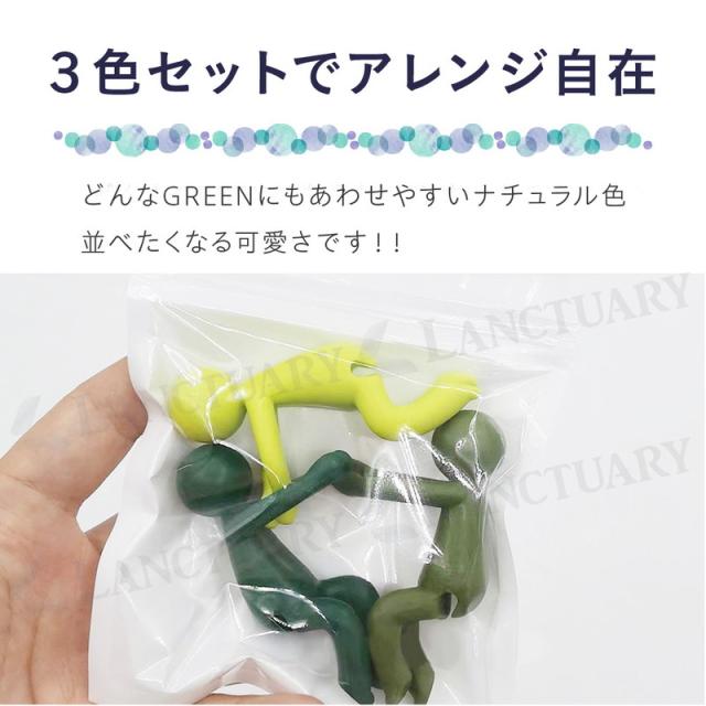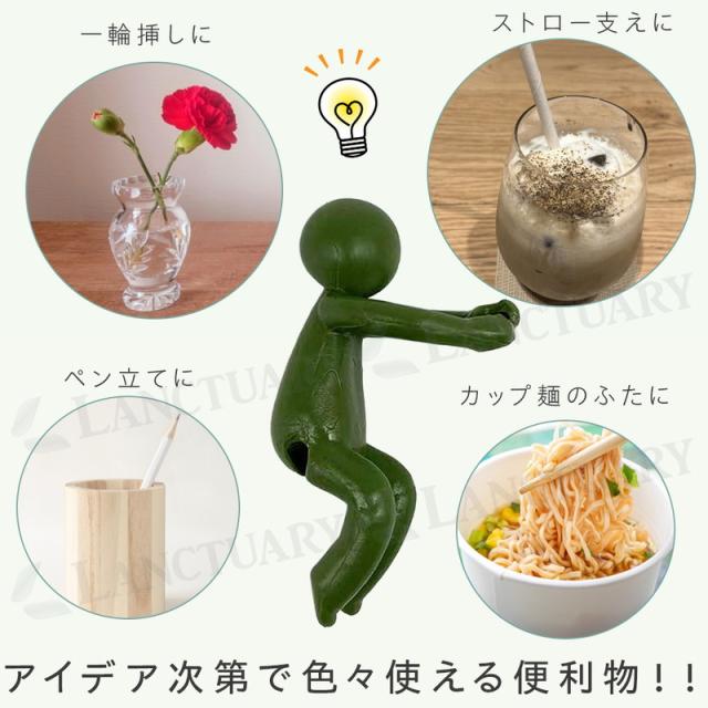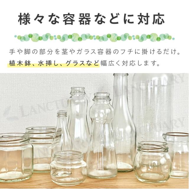 手や脚の部分を使って植物の茎を支えたり、容器に引っ掛けるだけで安定感をプラスできるので、特別な道具は必要ありません。小さなフィギュアながら、軽くて水に強い素材を使用しているため、水挿しや水耕栽培にも安心して使えます。毎日の植物のお世話や飾り付けに、ちょっとした遊び心を添えてくれます。