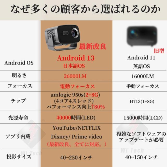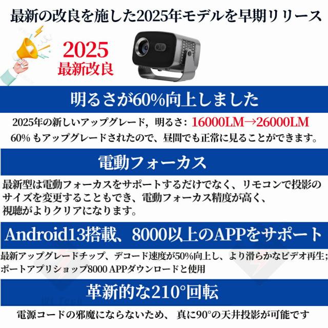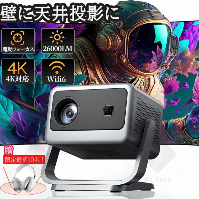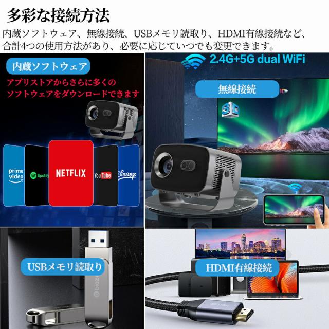 プロジェクター 電動フォーカス 小型 天井投影 4K対応 超高清 高輝度 Netflix/YouTubeb Android 13 高画質 静音 自動台形補 軽量 5G wi-fi 6 Bluetooth 5.2 ホームシアター 子供 壁 簡単設定 HDMIケーブル・リモコン付属 家庭用 2年保証