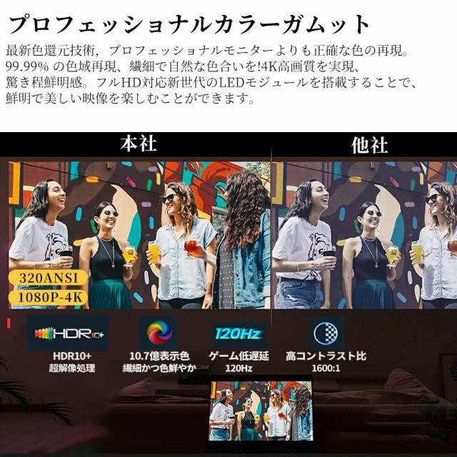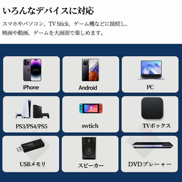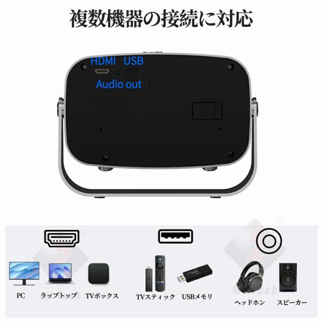 【台形補正&幅広い互換性&持ち運び便利】 台形補正機能が±15度の調整も簡単に行えます、お部屋の空間に応じて設置できます。Fire TV Stick、PC、ラップトップ、DVD プレーヤー、PS4/ PS5、Xbox、TV box、3.5mmオーディオなど様々なデバイスに接続可能です。HDMIケーブルでTVチューナーとの接続してテレビ番組も見れます。iPad、iPhone、Androidスマートフォンにも適用します。(ご注意:スマートフォン/タブレットと接続する場合、HDMI変換アダプターあるいはミラーキャストが必要です)弊社のモバイルプロジェクターは女性の手のひらぐらいのサイズなので、収納と持ち運びに便利です。