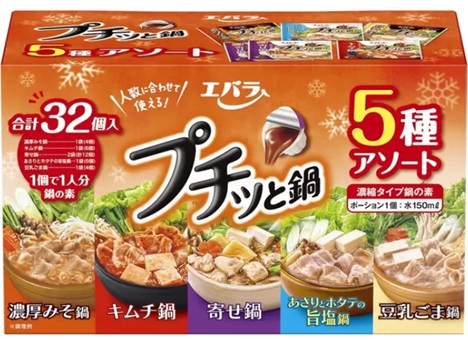 【32個入】エバラ プチッと鍋 5種アソート 濃縮 鍋 素 寄せ キムチ あさり 塩 豆乳 みそ 手軽 簡単 料理 おいしい 雑炊 ラーメン うどん Ebara