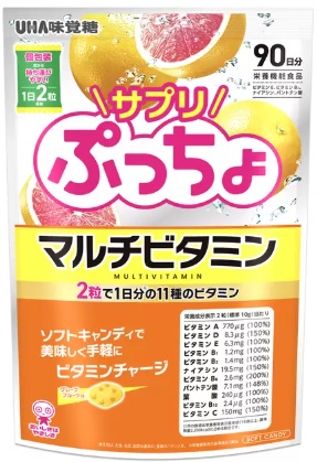 グレープフルーツ味【90日分】サプリぷっちょマルチビタミン Pucho 栄養摂取 UHA味覚糖 健康維持 ソフトキャンディ サプリメント 持ち運び 個包装