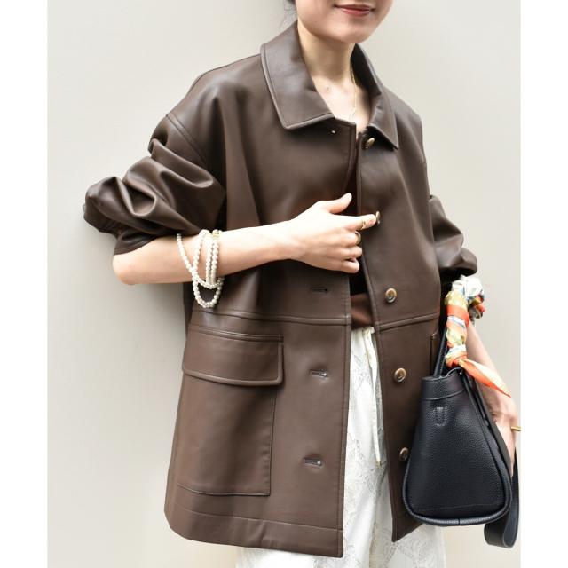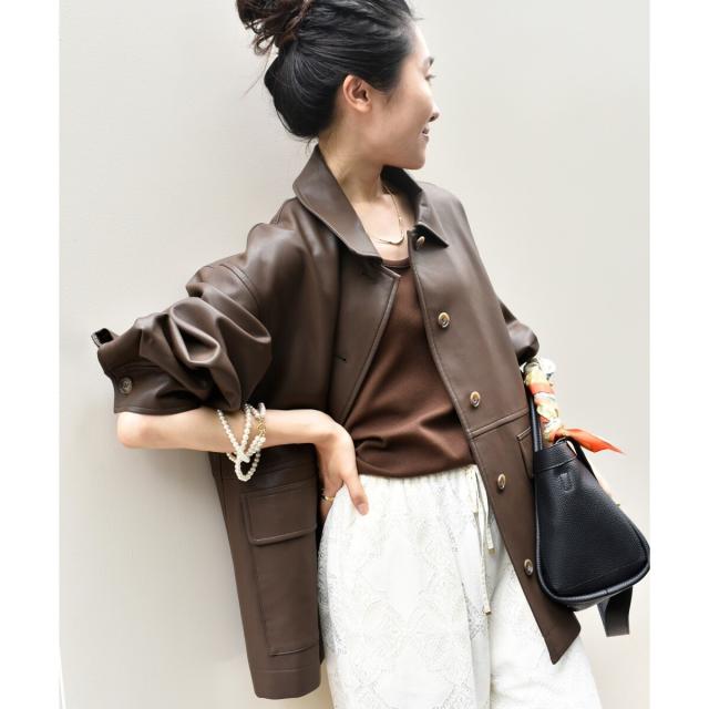 ルクールブラン(le.coeur blanc)/ステンカラー合皮ジャケット