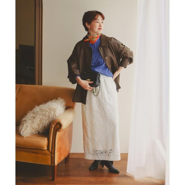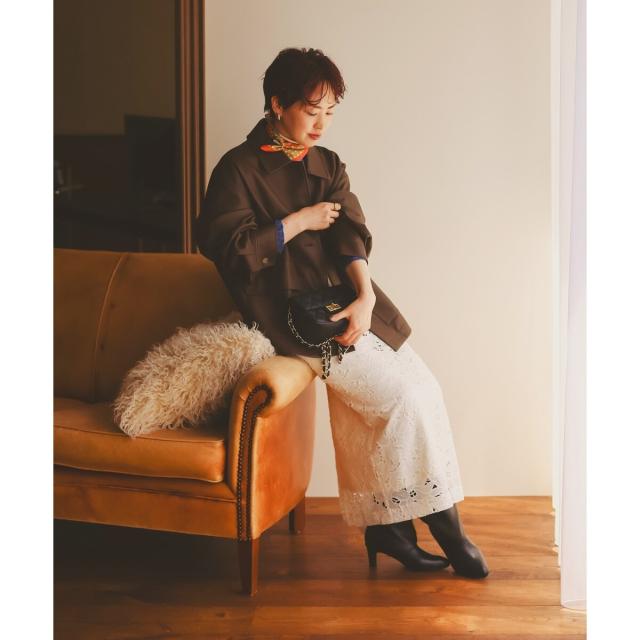 メンズライクな雰囲気もあり、レースやシフォンなど柔らかい素材との相性も○