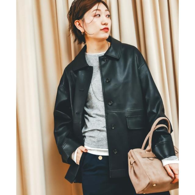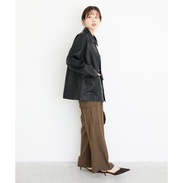 しなやかなフェイクレザーのカバーオールジャケット(シャツジャケット型のワークジャケットの総称)