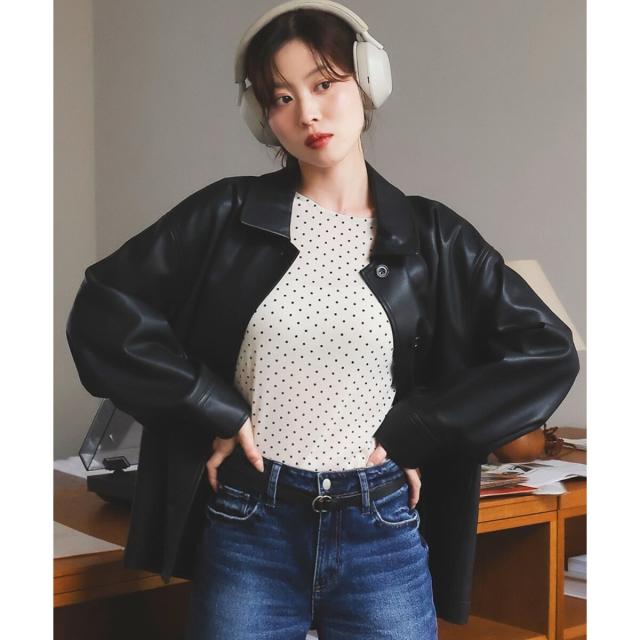 素材感:フェイクレザーなので、着心地も柔らかく軽いです。