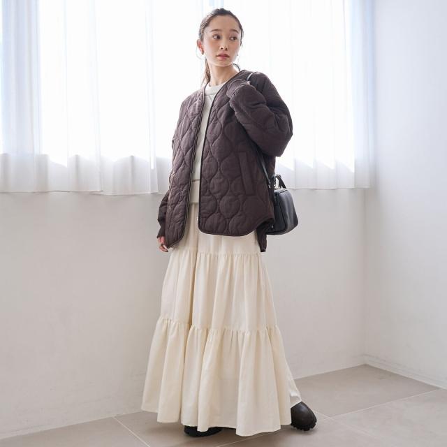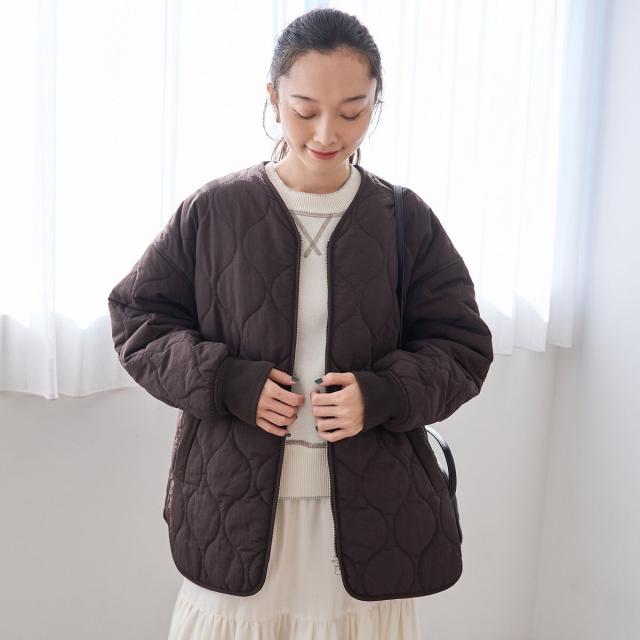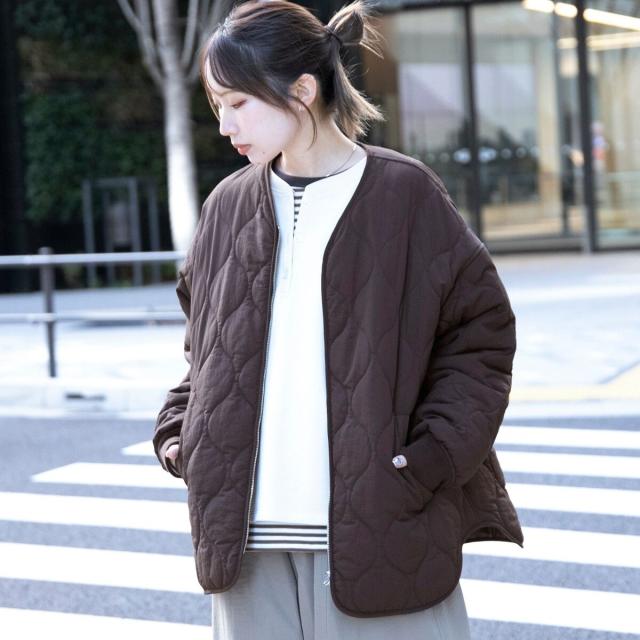 今までのものよりソフトな生地感で着心地が軽やかに。カジュアルなキルティングとフロントジップで見た目も使い勝手も◎。