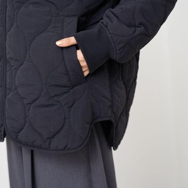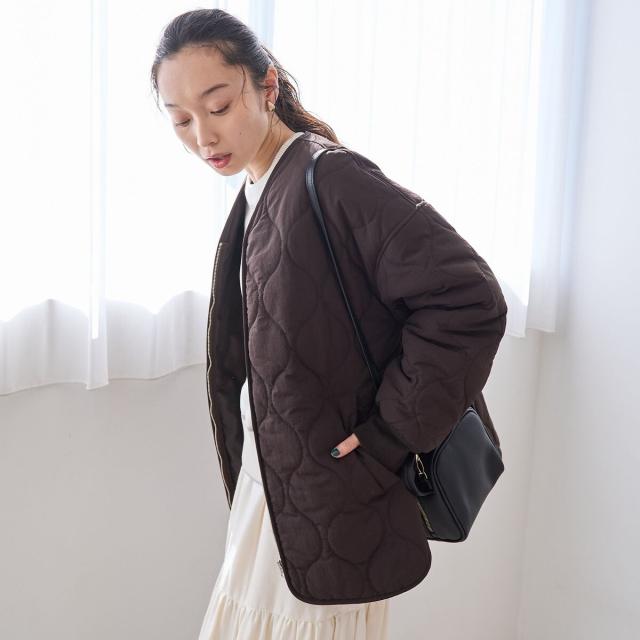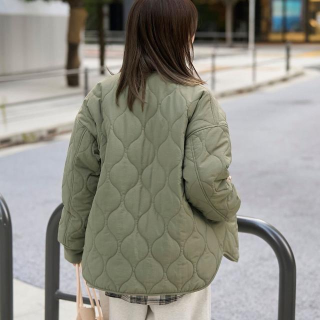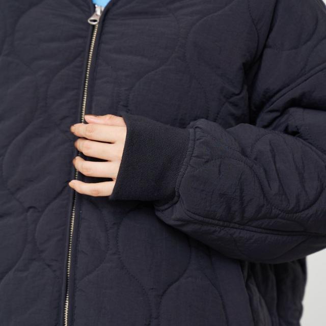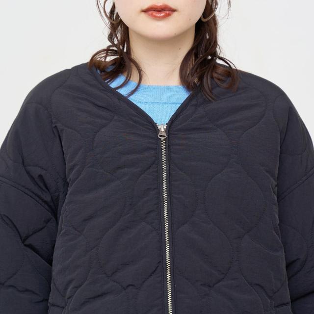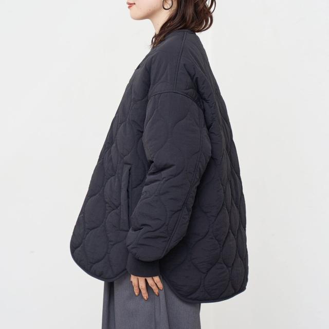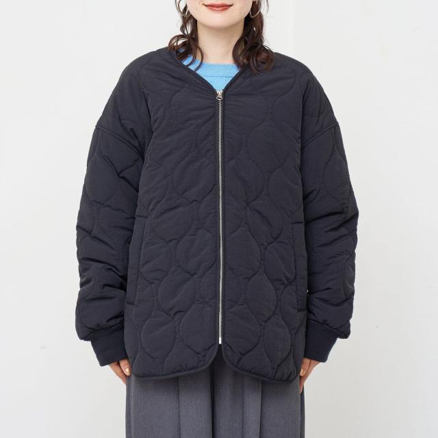 ノーカラー撥水キルティングブルゾン オーバーサイズ