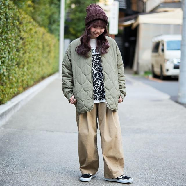 ゆるっとしたサイジングなので、冬時期には厚手のニットなどとのレイヤードも楽しめます。