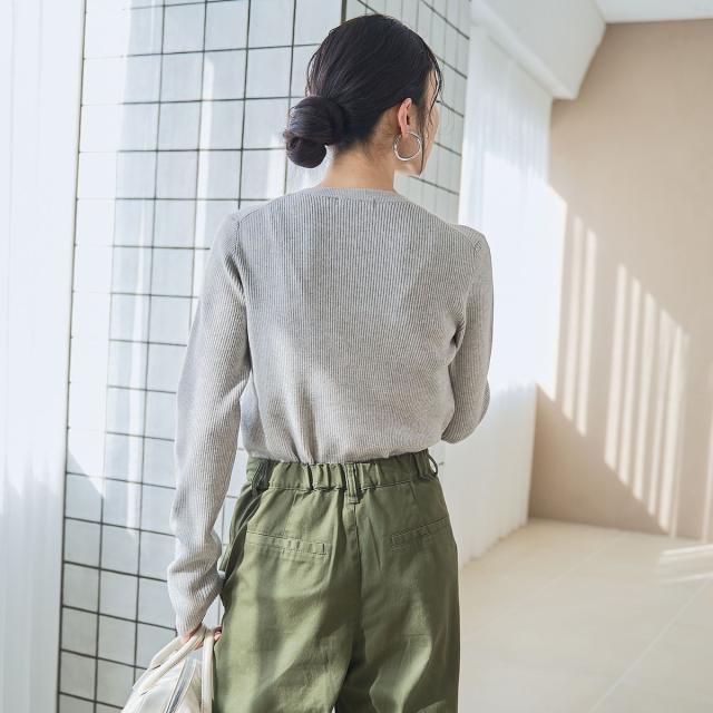 リブ仕様がさりげなく細見えをサポートし、インナーや一枚着でも着回しやすいデザイン。