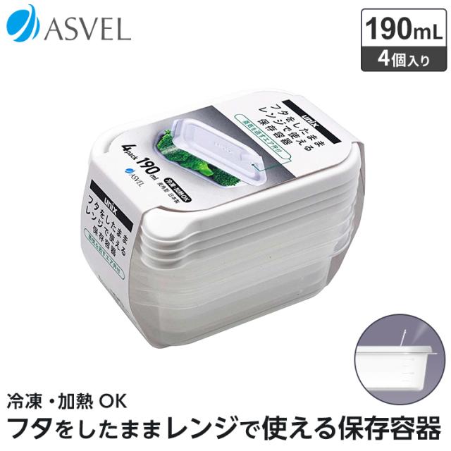 保存容器 レンジ名人 長角SS 4P アスベル ユニックス ASVEL UNIX レンジ容器 レンジ対応 保存 作り置き 冷凍 冷蔵 耐熱 ギフト