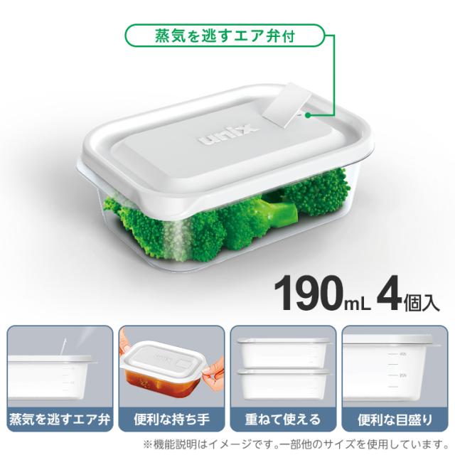 容量 : 190ml×4Pサイズ : 幅12.4×奥行8.2×高さ4.3cm材質 : 本体・フタ=ポリプロピレン日本製