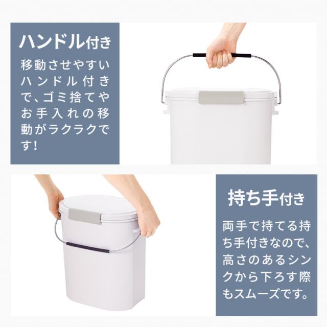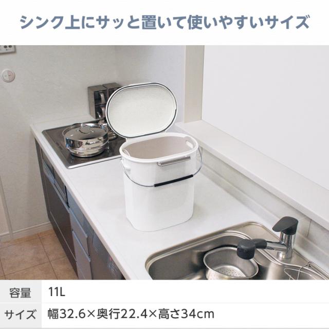 我が家は生ごみ臭わない!パッキン付きで完全密閉だから、生ごみなどの嫌な臭いを完全密閉。中バケツ付きで、ゴミ捨てもラクラク。容量 : 11リットル サイズ : 幅32.6×奥行22.4×高さ34.0cm材質 : 本体・フタ・バックル・中バケツ=ポリプロピレン ハンドル=スチール(クロームメッキ) スベリ止め・パッキン=シリコンゴム