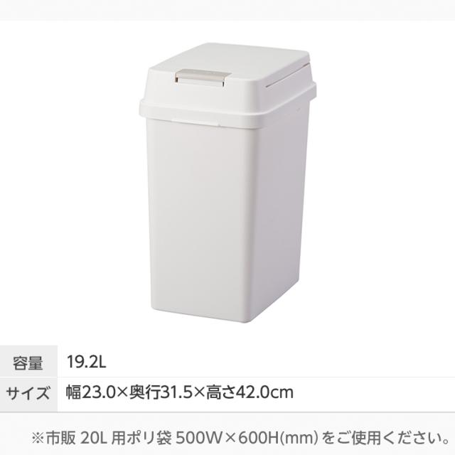 我が家は生ごみ臭わない!パッキン付きで完全密閉だから、生ごみなどの嫌な臭いを完全密閉。簡単開閉のワンプッシュオープン。容量 : 19リットル サイズ : 幅23.0×奥行31.5×高さ42.0cm材質 : 本体・フタ・フタ枠・レバー=ポリプロピレン ポリ袋止め=スチール(樹脂コーティング) バネ=ステンレス鋼 パッキン=シリコンゴム日本製