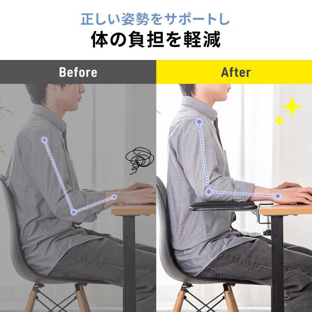 ●肘を自然な高さで支え、長時間の作業でも肩や腕の疲れをやわらげます。