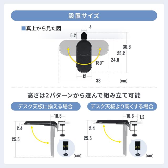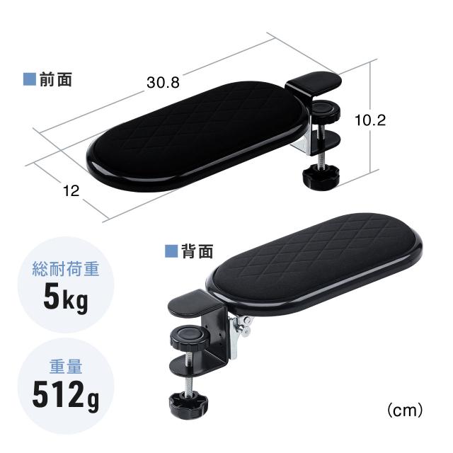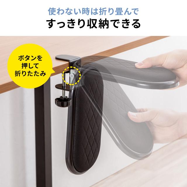 肘置き クランプ 折りたたみ アームレスト ひじ掛け 疲労軽減 180°回転 リストレスト 90°折り畳み 後付 デスクワーク [200-TOK026BK]