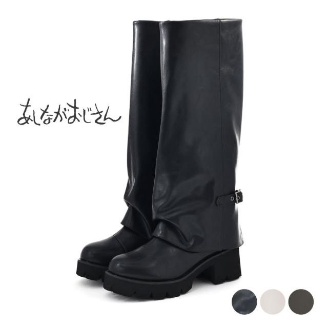 byあしながおじさん レディース ブーツ 軽量 ルーズロングブーツ 8990029 カバーブーツ Y2K 軽い 厚底 履きやすい サイドファスナー かわいい シンプル 疲れにくい バックル