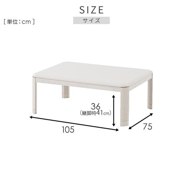| 本体サイズ | 【こたつ本体】 幅105×奥行75×高さ36cm(継脚時高さ41cm) 【こたつ布団】 掛け布団:幅200×奥行240cm 敷き布団:幅200×奥行240cm |