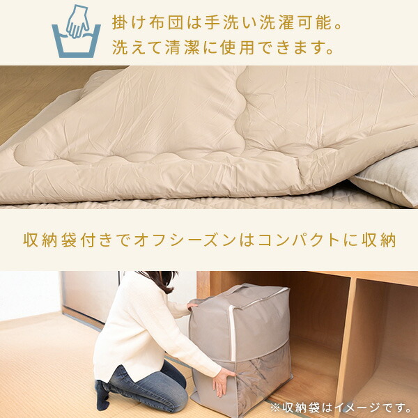 | 商品説明 | ●こたつ本体・掛け布団・敷き布団の3点セット ●【こたつ本体】 ●電源:100V (50Hz/60Hz) ●ヒーター型番:MS-303H ●消費電力:300W ●電気代目安(1時間あたり):(強)5円、(弱)2.5円 ※電力料金目安単価1kWhあたり31円(税込)で算出 ●【こたつ布団】 収納袋付きでオフシーズンもコンパクトに収納 ※お手入れは品質表示に従って行ってください。誤ったお手入れは、品質低下・破損の原因となります。 |
