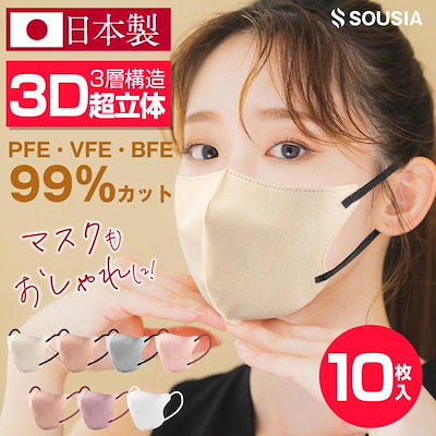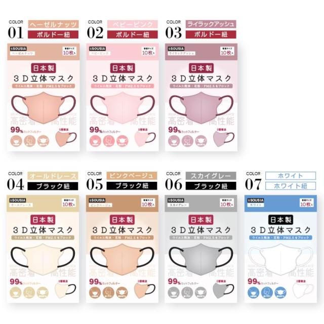 マスク 日本製 3D立体 10枚 不織布 マスク 7カラー 信頼の日本製 医療用クラスの性能 3D立体構造 3層構造 柳葉型 マスク 息がしやすい 小顔効果