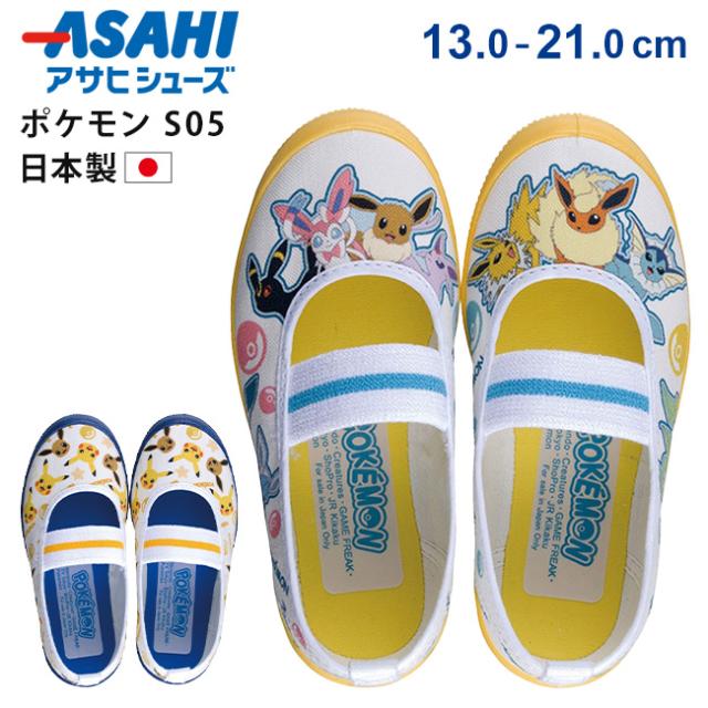 アサヒシューズ ポケモン 上履き 上靴 子供 子ども キッズ ジュニア 男の子 女の子 履きやすい 歩きやすい 疲れない 2E ゴムバンド 足に優しい 幼稚園 保育園 小学生 小学校 ポケモン S05 日本製 屋内シューズ バレエシューズ うわばき 内ズック 学校 靴