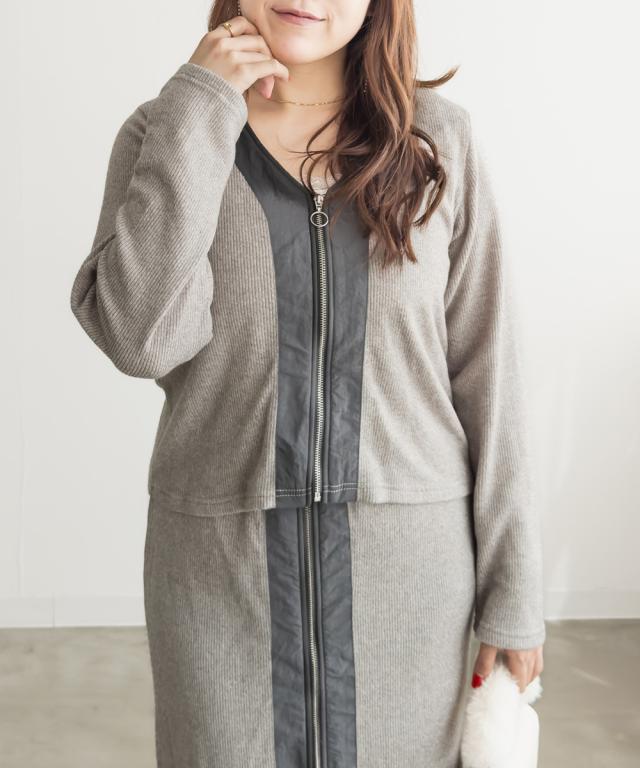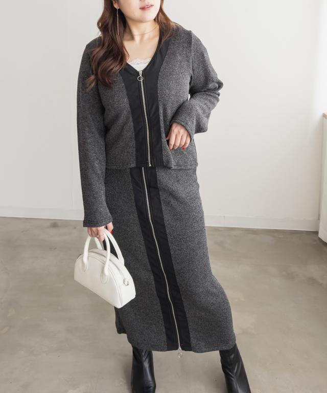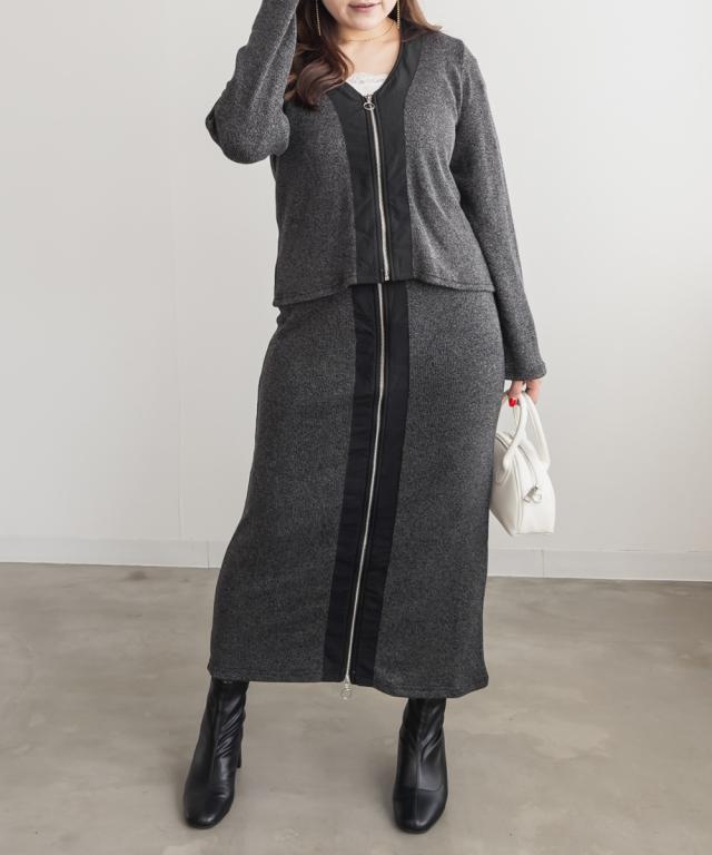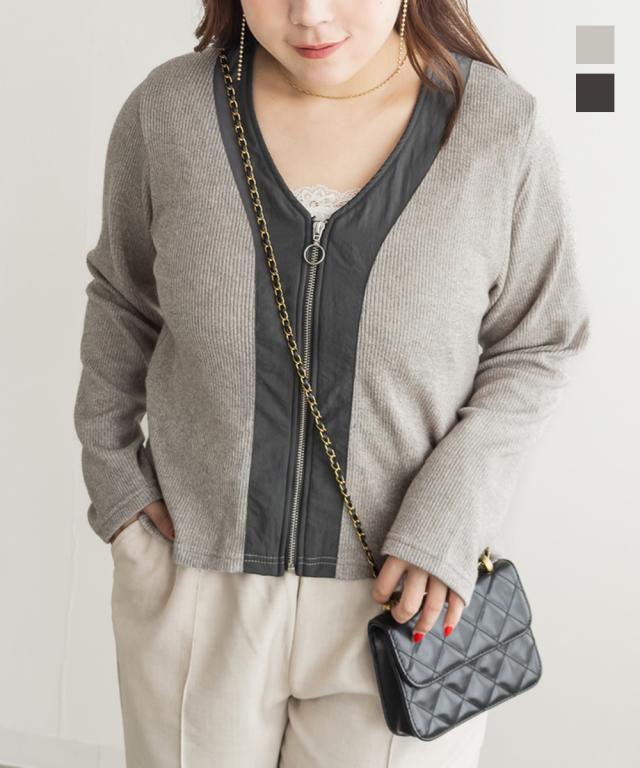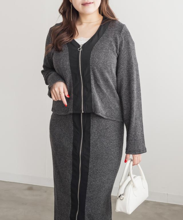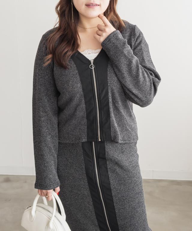 大きいサイズ/レディース/3L/4L/5L/フロントジップニットカーディガン